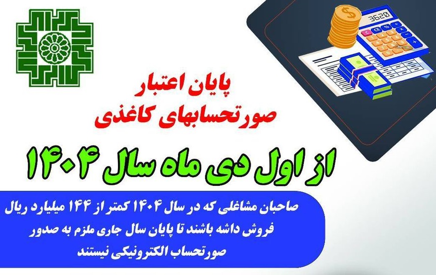 مدیرکل امور مالیاتی آذربایجانشرقی با تأکید بر اجرای کامل قانون پایانههای فروشگاهی و سامانه مؤدیان اعلام کرد: از ابتدای دیماه سال ۱۴۰۴، تنها صورتحسابهای الکترونیکی ثبتشده در سامانه مؤدیان مشمول برخورداری از اعتبار مالیاتی خرید خواهند بود و صورتحسابهای کاغذی از این تاریخ فاقد هرگونه اعتبار مالیاتی هستند.