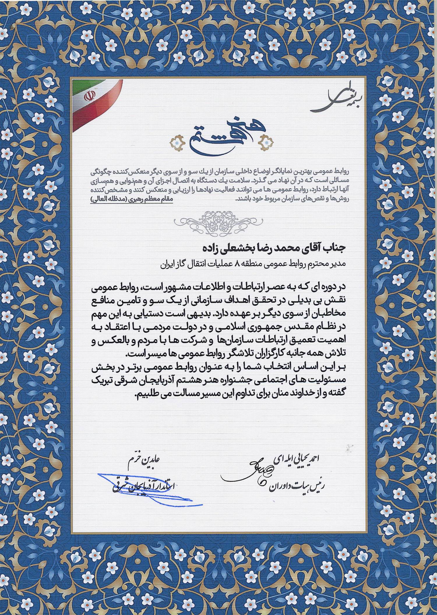 روابط عمومی سازمان جهاد کشاورزی آذربایجان شرقی رتبه برتر جشنواره هنر هشتم را کسب کرد