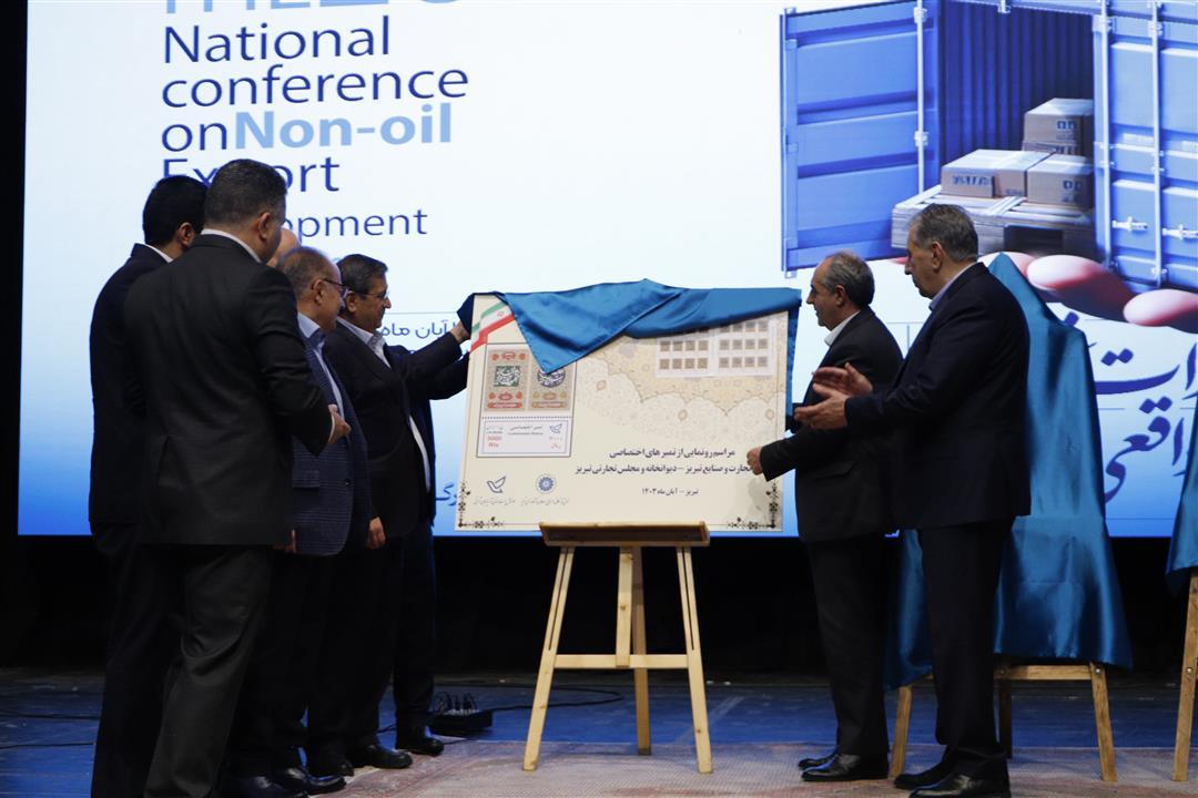 به گزارش آدینه پرس: در بیست و هشتمین همایش ملی توسعه صادرات غیر نفتی در تبریز، با حضور عبدالناصر همتی وزیر اقتصاد و امور دارایی، شهرام دبیری معاون پارلمانی رئیس جمهور، صمد حسن زاده رئیس اتاق بازرگانی ایران، بهرام سرمست استاندار آذربایجان شرقی، یونس ژائله رئیس اتاق بازرگانی تبریز و دباغ صادقی پور مدیرکل پست استان آذربایجان شرقی دو تمبر...
