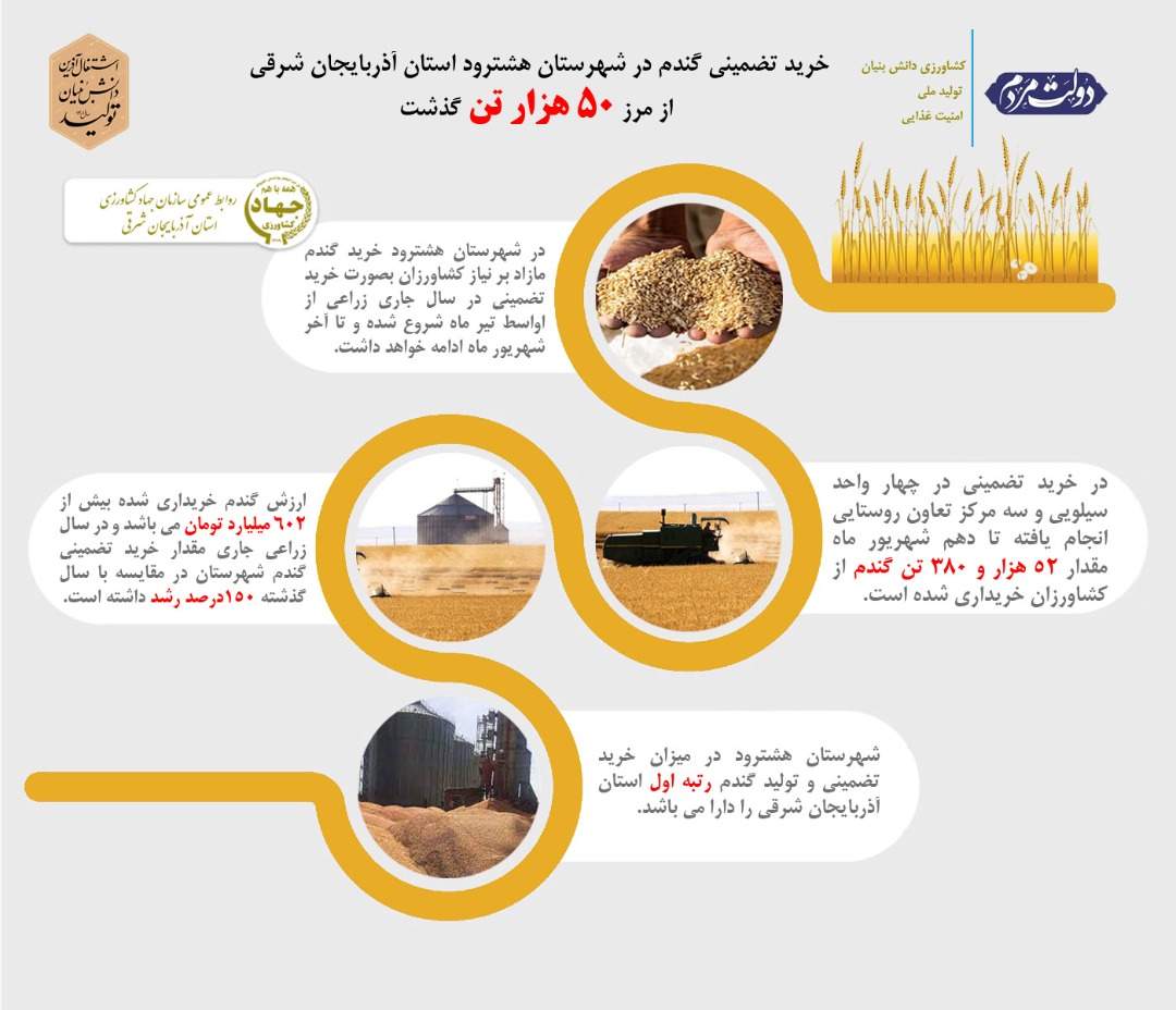 خرید تضمینی گندم در شهرستان هشترود استان آذربايجان شرقي از مرز ۵۰ هزار تن گذشت
