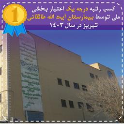 کسب رتبه درجه یک اعتباربخشی ملی وزارت بهداشت، درمان و آموزش پزشکی توسط بیمارستان آیت الله طالقانی تبریز