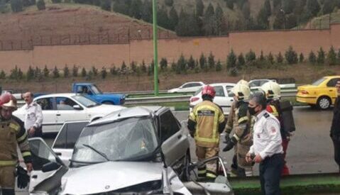 تصاوف دو خودروی پراید در اتوبان کسایی با پنج مصدوم