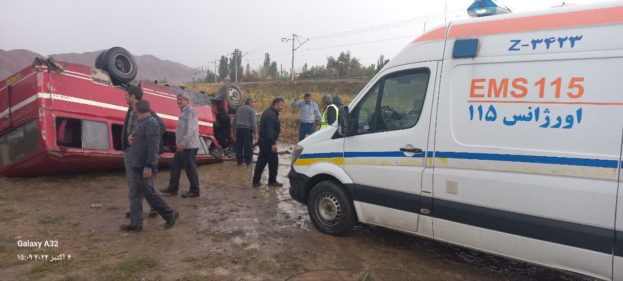 واژگونی یک دستگاه مینی بوس در محور تبریز مرند با ۱۳ مصدوم