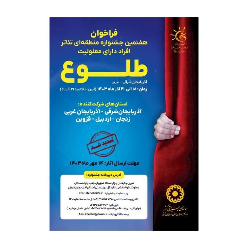 تمدید فراخوان هفتمین جشنواره منطقه ای تئاتر افراد دارای معلولیت”طلوع”