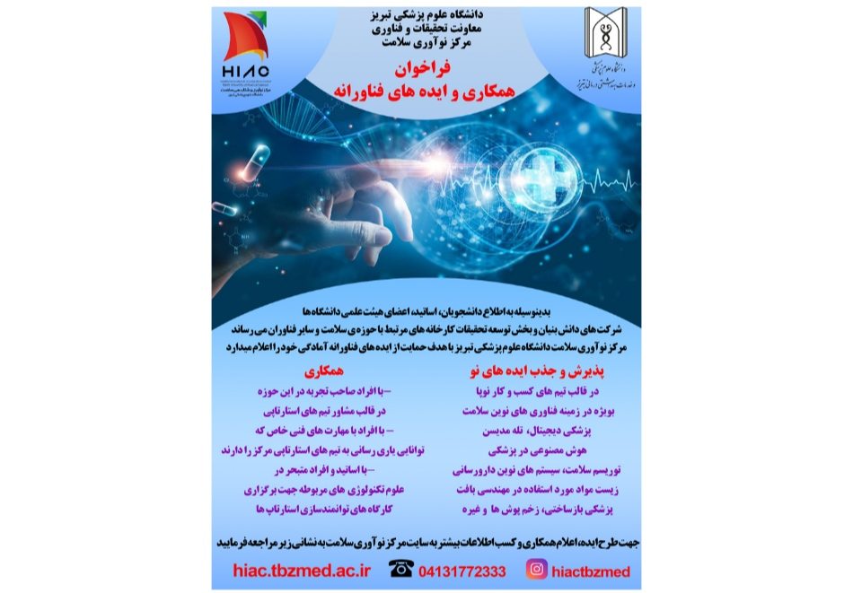 فراخوان همکاری و ایده های فناورانه دانشگاه علوم پزشکی تبریز
