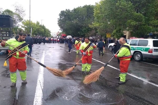 تلاش شبانهروزی پاکبانان تبریز در مراسم تشییع شهیدان خدمت