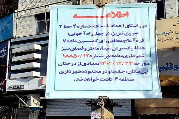 جابجایی درختان واقع در پروژه احداث ایستگاه شماره چهار خط ۲ متروی تبریز