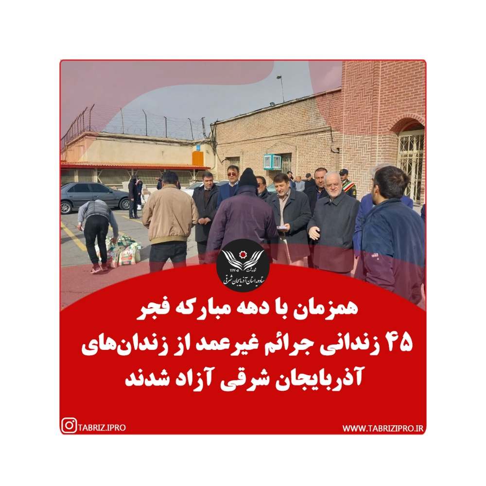 همزمان با دهه مبارکه فجر ۴۵ زندانی غیرعمد از زندانهای آذربایجان شرقی آزاد شدند