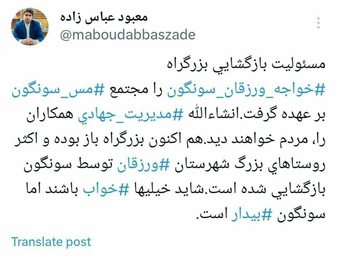 به گزارش آدینه پرس: مسئوليت بازگشايي بزرگراه خواجه ورزقان سونگون را مجتمع مس سونگون بر عهده گرفت.انشاءالله مديريت جهادي همكاران را، مردم خواهند ديد.هم اكنون بزرگراه باز بوده و اكثر روستاهاي بزرگ شهرستان ورزقان توسط سونگون بازگشايي شده است.شايد خيليها خواب باشند اما سونگون بيدار است.