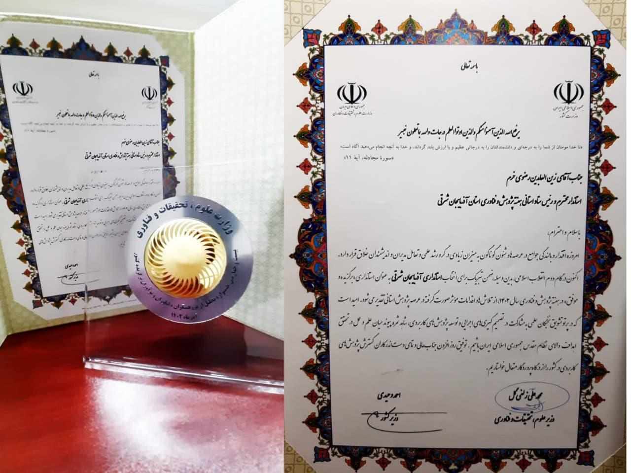 رتبه برتر استانداری آذربایجان شرقی در حوزه پژوهش