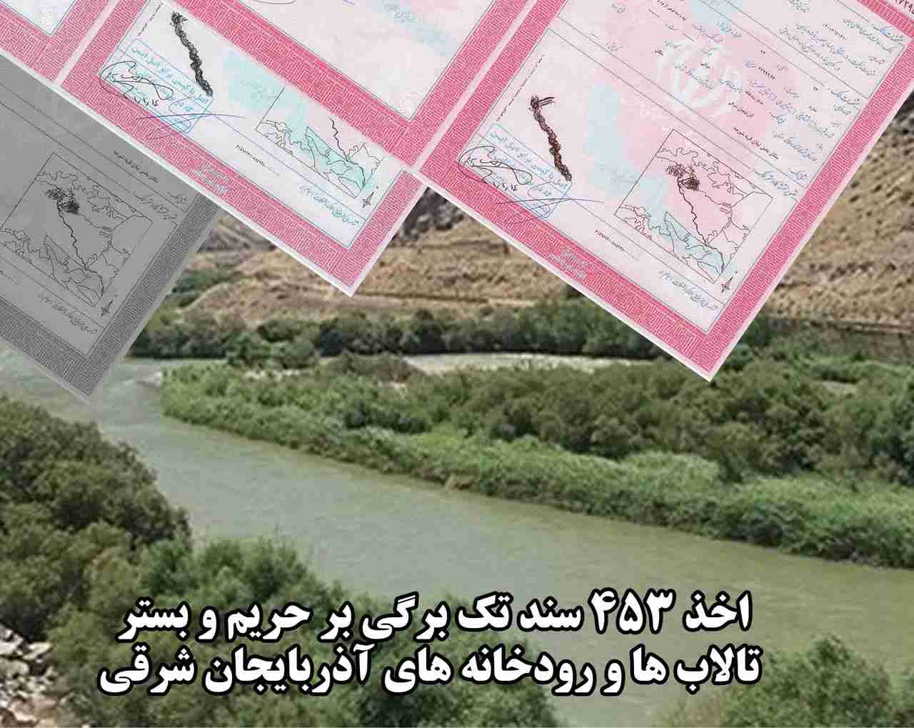 اخذ ۴۵٣ سند تک برگی برای حریم و بستر رودخانهها و تالابهای آذربایجان شرقی