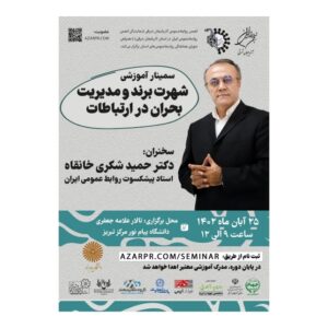 به گزارش پایگاه خبری آدینه پرس، نمایندگی انجمن روابطعمومی ایران در استان آذربایجان شرقی (انجمن روابطعمومی آذربایجان شرقی) با همکاری شورای هماهنگی روابطعمومی های استان و روابط عمومی سازمان جهادکشاورزی استان آذربایجان شرقی سمینار تخصصی «شهرت برند و مدیریت بحران در ارتباطات» را در تالار علامه جعفری دانشگاه پیام نور مرکز تبریز برگزار می کند. این سمینار تخصصی به منظور...