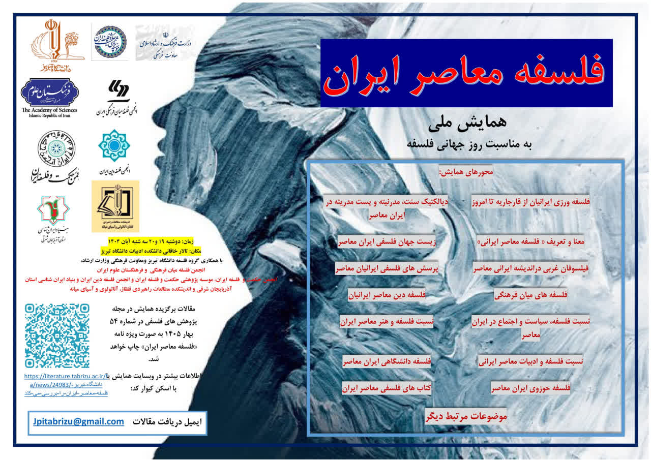 آدینه پرس ، گروه فلسفه دانشگاه تبریز با همکاری و مشارکت معاونت فرهنگی وزارت ارشاد، فرهنگستان علوم ایران، انجمن فلسفه میان فرهنگی، انجمن حکمت و فلسفه ایات، موسسه پژوهشی حکمت و فلسفه ایران، انجمن فلسفه دین ایران، بنیاد ایران شناسی آذربایجان شرقی و اندیشکده مطالعات راهبردی قفقاز، آناتولی و آسیای میانه مبادرت به برگزاری نخستین همایش ملّی فلسفه معاصر ایران...