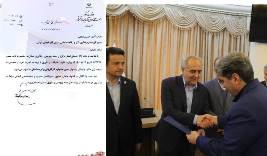 انتصاب دبیر جشنواره کارآفرینان برتر استان آذربایجان شرقی*