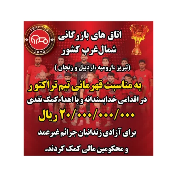 به گزارش آدینه پرس: مدیر ستاد دیه آذربایجان شرقی گفت: به مناسبت قهرمانی تیم فوتبال تراکتور و به همت «صمد حسنزاده» رئیس اتاق بازرگانی ایران و همراهی رؤسا و اعضای اتاقهای بازرگانی تبریز، ارومیه، اردبیل و زنجان، ۲۰ میلیارد ریال جهت آزادی زندانیان جرایم غیرعمد و محکومین مالی کمک کردند. رسول تقیپور گفت: خیران زیادی در یک هفته اخیر...