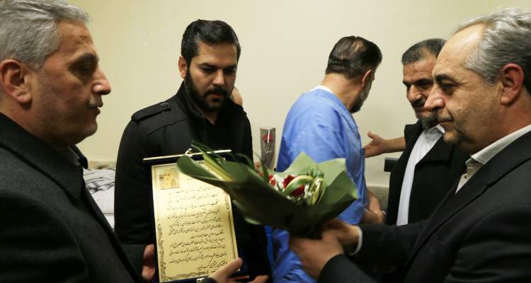 به گزارش آدینه پرس، بهرام سرمست شامگاه امروز، شنبه در جریان عیادت از جانبازان بستری در بیمارستان اعصاب و روان فجر تبریز، لوح تهیه شده توسط آنان را به همراه یک دسته گل به «علی اکبر سلمانی» تقدیم کرد. در این لوح نوشته شده است: «اینجانبان جمعی از جانبازان اعصاب و روان بستری در بیمارستان فجر تبریز از زحمات...