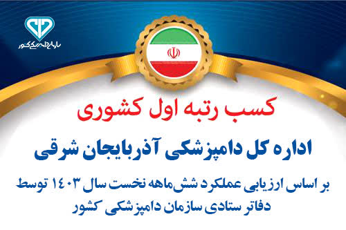 کسب رتبه اول اداره کل دامپزشکی استان آذربایجان شرقی در بین ادارات کل دامپزشکی سراسر کشور