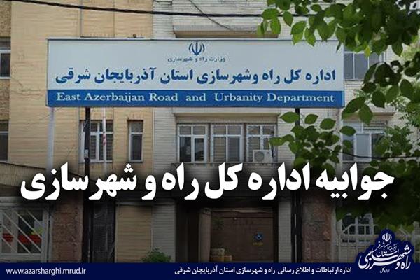 جوابیه اداره کل راه و شهرسازی آذربایجان شرقی به انتشار یک خبر