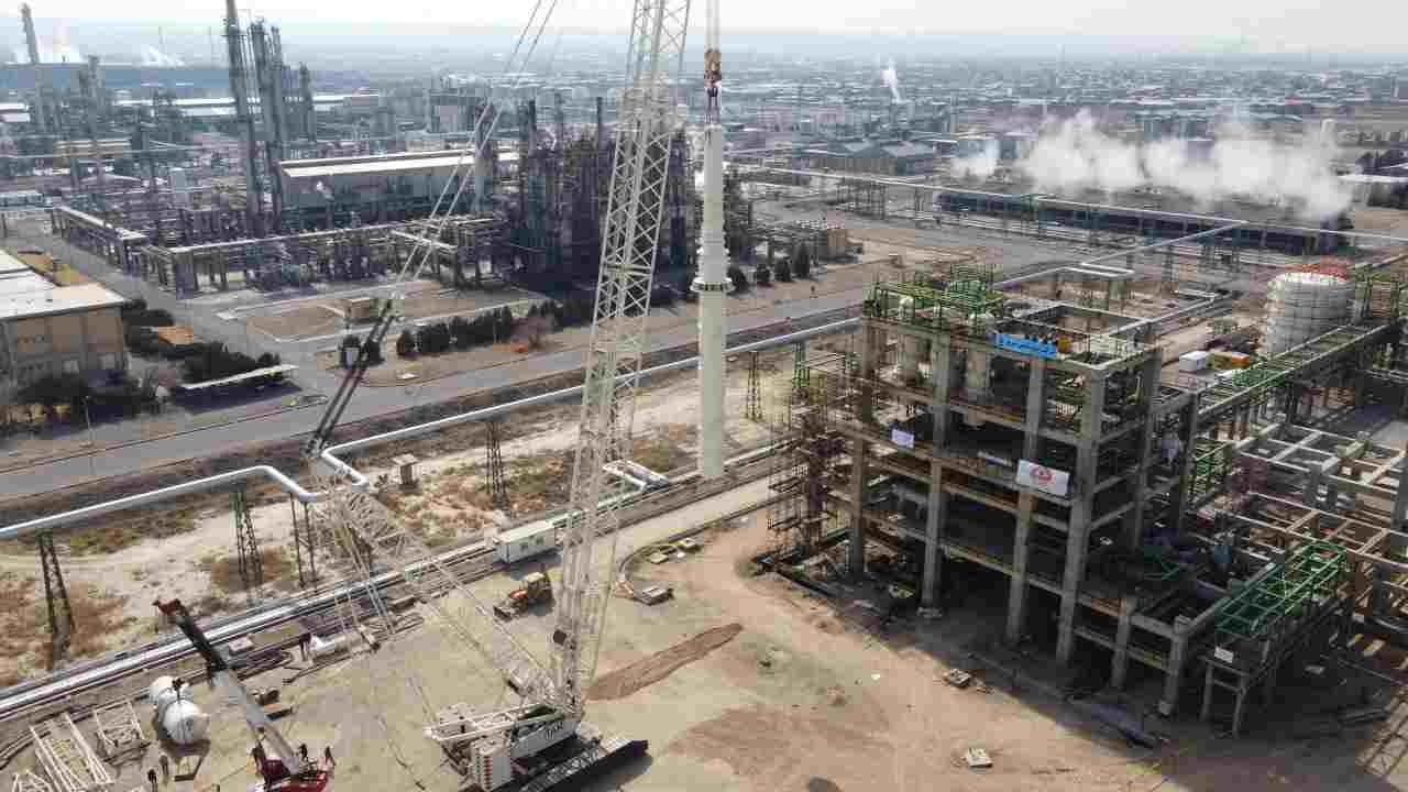نصب برج تقطیر هگزان پروژه پلیاتیلن سنگین پتروشیمی تبریز؛ نماد خودکفایی در صنعت ملی